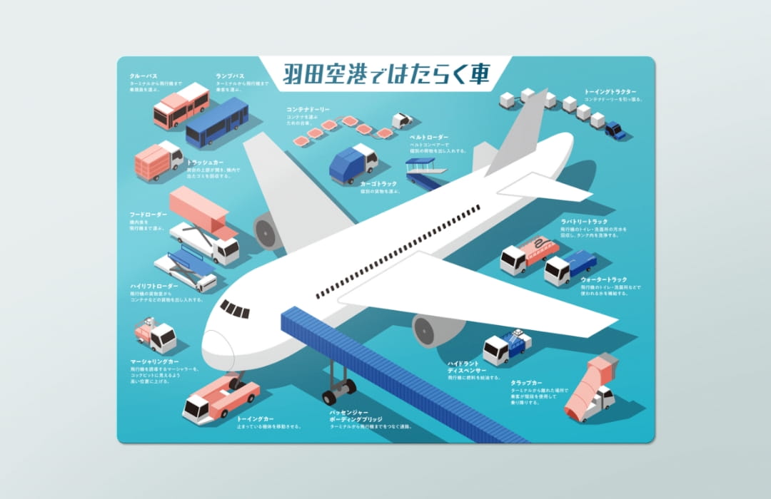 裏面は羽田空港ではたらく車を紹介しています。