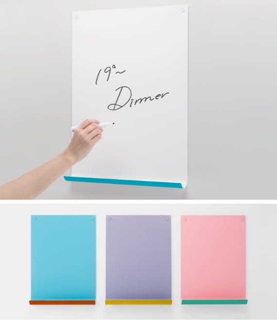 ホワイトボードとしては珍しいポップなカラーバリエーションも印象的です。