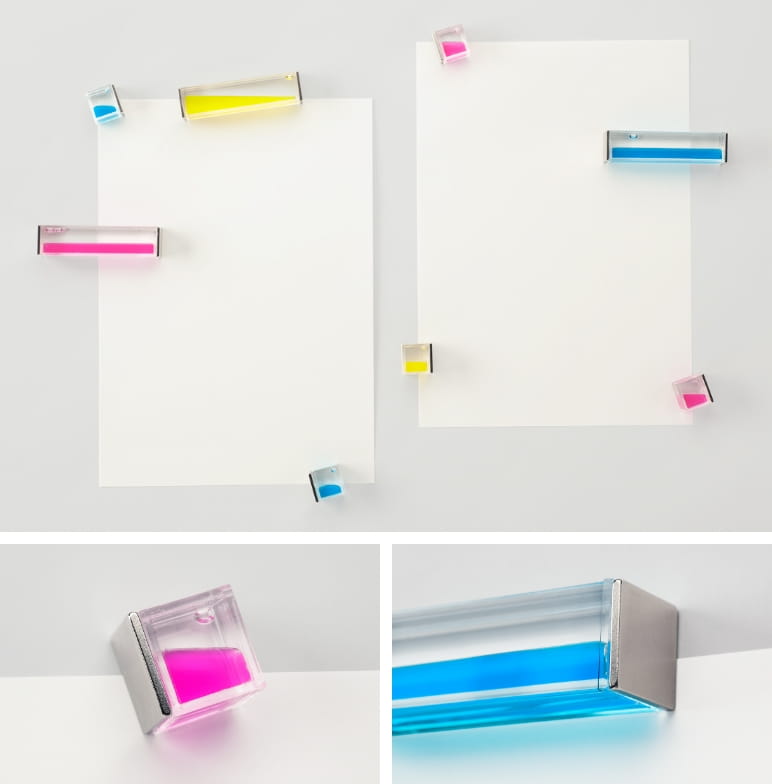 透明だと水平のラインが見えにくかっため、色がついた液体で試してみました。