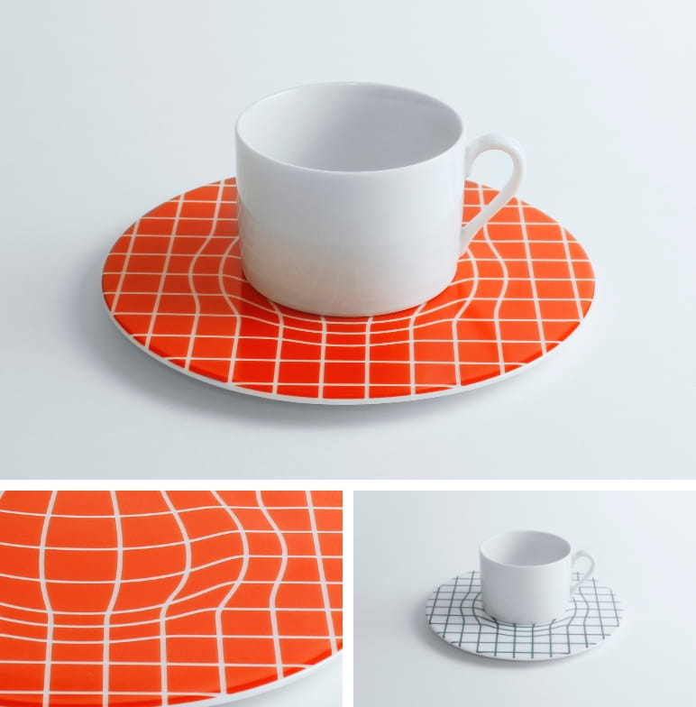 カップを置くと、重みで沈んだよう見えるカップ&ソーサーです。